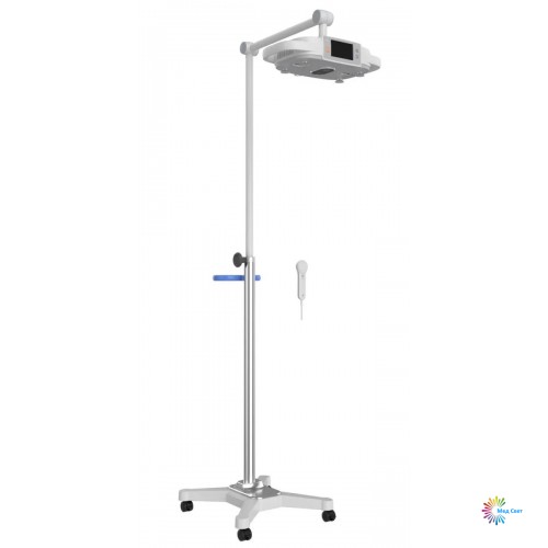 • Якісна та функціональна мобільна стійка. Мобільна стійка з масивною основою та закріпленою на ній ручкою для переміщення унеможливлюють перекидання стійки в процесі експлуатації та переміщення. Всі чотири колеса обладнано гальмівними механізмами. Мобільна стійка забезпечує легке налаштування висоти та кута нахилу основного блоку та полегшує транспортування всередині лікарні. Кріплення основного блоку до мобільного візка швидко-знімне, користувач може швидко закріпити або зняти основний блок без використання інструментів.